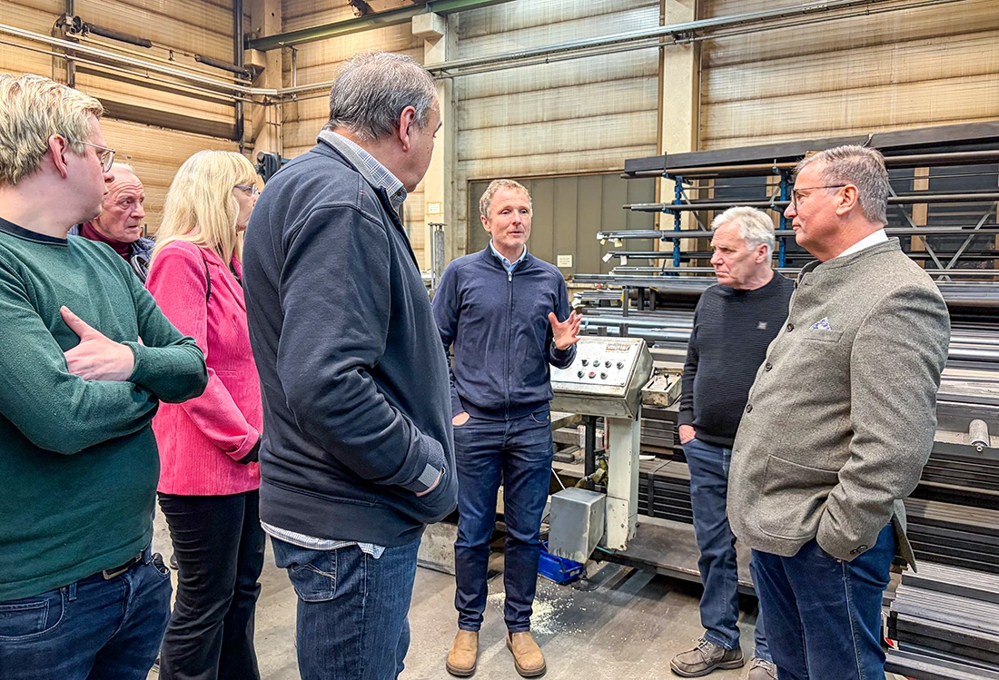 Geschäftsführer Rolf Zürn begrüßte die Delegation und schilderte die aktuelle Situation der Branche. „Unsere Auftragslage ist grundsätzlich solide, aber die wirtschaftlichen Rahmenbedingungen bleiben herausfordernd. Steigende Kosten, Bürokratie und internationale Wettbewerbsverzerrungen setzen dem industriellen Mittelstand spürbar zu“, macht Rolf Zürn deutlich.